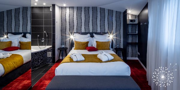 Plongez dans un univers de détente avec notre Chambre Double Balnéo, spacieuse et élégante de 29m² avec petit déjeuner inclus.