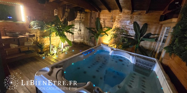 Un espace Spa luxuriant éveille vos sens pour une nuit insolite où sérénité et complicité sont les maîtres mots. Profitez du jacuzzi haut de gamme pour vous allonger, vous détendre et vous ressourcer. Laissez-vous envelopper par la chaleur bienfaisante du sauna infrarouge, offrant une expérience relaxante incomparable. Pour une touche finale de dépaysement, une douche tropicale ouverte entièrement en bois vous permettra de vous rafraîchir.